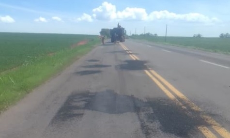 O DER iniciou a operação tapa-buraco na rodovia entre Campina da Lagoa e Altamira do Paraná (PR-364).