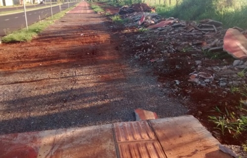 "Já virou uma novela mexicana a ciclovia (pista de caminhada) do jardim Tropical. Tem um monte de rachaduras , terra na pista, mato... Essa parte arrancada já faz mais de mês que está assim. Tem mais três pontos desse jeito".