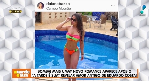 Campo Mourão foi citada nesta terça-feira no programa "A tarde é sua", da Rede TV!. É a atração comandada por Sonia Abrão, que destaca "fofocas" do meio artístico. O colunista Alessandro Lo-Bianco disse que a mourãoense Daiana Bazzo, 32, estaria vivendo romance com o cantor Eduardo Costa. Os dois se conheceram quando o sertanejo fez show em Campo Mourão, no final de agosto.
