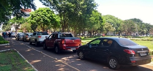 A fila de carros fechou, nesta quarta-feira. toda a quadra que corta as praças centrais de Campo Mourão. Foi por volta das 11h30, já no chamado "horário de rush". Como a av. Capitão Índio Bandeira está fechada entre as ruas Brasil e Harrison José Borges, por causa da decoração natalina, aumentou o número de carros que usa o trecho da rua Brasil que passa pelas praça, daí o motivo do engarrafamento. Ah, cidade grande é fogo...