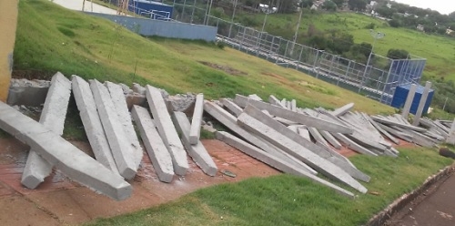 Cerca de concreto do centro comunitário do conjunto Fortunato Perdoncini, em Campo Mourão, foi derrubada pela pela prefeitura. Segundo a administração, a cerca estava condenada, balançando. Havia risco de cair e antes que isso acontecesse, podendo machucar alguém, foi "pra chón". A empreiteira foi notificada.