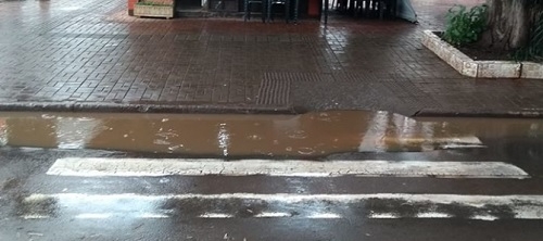 Todo dia que chove essa esquina fica sempre igual. É no centrão de Campo Mourão - av. Capitão Índio Bandeira com rua São Paulo. Quem consegue pular passa, quem não consegue molha o sapato.