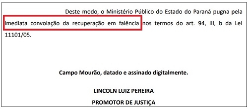 Se depender do promotor Lincoln Luiz Pereira, a justiça vai decretar a falência da Fertimourão.
