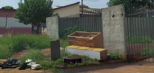 "Restos de pia, armário e de outras coisas na rua Eulália Carneiro de Campos, no jardim Alvorada. Faz tempor que estão no local.