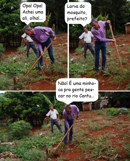 Os cliques são de sábado, em Nova Cantu, quando foi realizado arrastão de combate ao mosquito da denque. O município está com epidemia da doença e até o prefeito José Carlos Gomes aderiu à mobilização. Ao encontrar morador carpindo um terreno, ele não resistiu e foi matar a saudade dos tempos de roça. Detalhe: terminou o serviço pro morador.