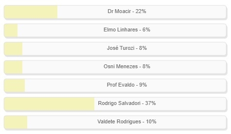 "Quem já disputou a prefeitura de Campo Mourão e que deveria tentar de novo?" Enquete com essa pergunta foi encerrada neste sábado. Rodrigo Salvadori, que foi candidato na última eleição, em 2016, teve 37% dos votos. Dr Moacir, candidato em 1996, ficou em segundo, com 22%. O resultado completo está no quadro acima.