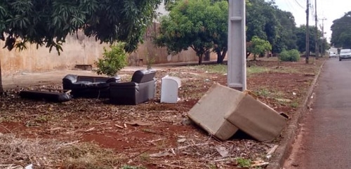 Três sofás, sendo dois de um jogo. Em Campo Mourão, não perdoam nem o entorno da Coamo.