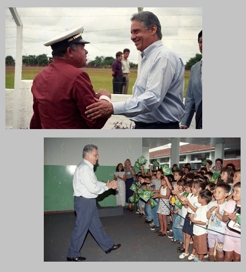 Do acervo do historiador Jair Elias dos Santos Jr, duas fotos da visita do presidente Fernando Henrique Cardoso a Campo Mourão, em 1995. Na primeira, conversa com maestro da Banda Municipal, ainda no Aeroporto Municipal. Na segunda, se dirige às crianças no colégio Dom Bosco, onde abriu o ano letivo. A visita, que incluiu a inauguração do Teatro Municipal, completou 25 anos nesta quinta-feira.