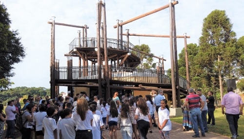 Teve solenidade na manhã desta terça-feira no Parque do Lago para reinauguração do Eco-Museu do Saneamento. É o que o público conhece como mirante. A reforma custou R$ 360 mil e foi bancada pela Sanepar. Entre os presentes, o prefeito Tauillo Tezelli (Campo Mourão) e secretário de Estado Márcio Nunes (Desenvolvimento Sustentável e Turismo).