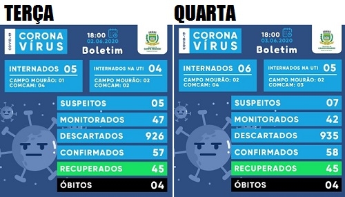 A Secretaria de Estado da Saúde corrigiu uma informação nesta quarta-feira. Um caso antes atribuído a Mamborê passou para Campina da Lagoa. É o segundo registro de covid-19 no município. Já em Quarto Centenário a prefeitura anunciou mais três casos, totalizando quatro.