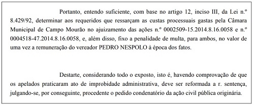 Pena? Ressarcimento das custas processuais e multa de um salário que ele recebia como vereador.