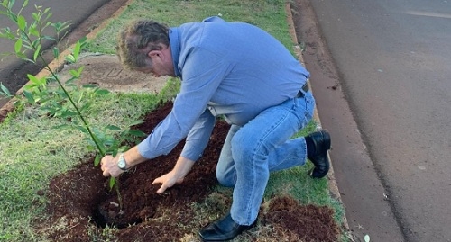 O advogado Arno Ferrari voltou a plantar mudas de árvores pelos canteiros das avenidas de Campo Mourão. A ação recomeçou pela av. Manoel Mendes de Camargo e chegou à Guilherme de Paula Xavier. Na primeira etapa foram duas mil. Agora são mais duas mil.