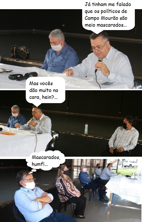 Os cliques são desta quarta-feira, durante visita do secretário de Estado da Saúde, Beto Preto, a Campo Mourão. Veio falar do coronavírus. Ele estava de máscaras, mas retirou na hora de falar. O evento teve as presenças do secretário Márcio Nunes (Desenvolvimento Sustentável) e do deputado Douglas Fabrício, além de quatro prefeitos.