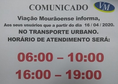 Com a volta do comércio, mas em horário diferente, a Viação Mourãoense também muda o horário de funcionamento do transporte coletivo urbano de Campo Mourão. A partir desta sexta-feira a circular vai operar das 6h às 10h e das 16h às 19h. Lembrando que o comércio abrirá, com restrições, das 10h às 16h.