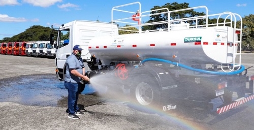 O governador Ratinho Jr entregou nesta quarta-feira 20 dos 29 caminhões-pipa que vão atender municípios do Estado. O investimento de R$ 6,2 milhões inclui três cidades da região - Engenheiro Beltrão, Luiziana e Mamborê. Os caminhões ajudam no combate a incêndio, no abastecimento de água em casos de estiagem e também na higienização contra o coronavírus.