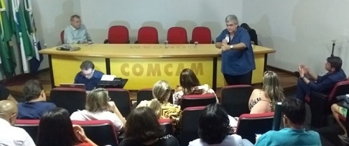 Treze prefeitos e vários secretários da Saúde e da Educação se reuniram na Comcam nesta segunda-feira.