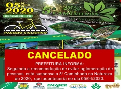 Antes, foram suspensos os eventos em Luiziana, Nova Cantu, Campina da Lagoa e Barbosa Ferraz.