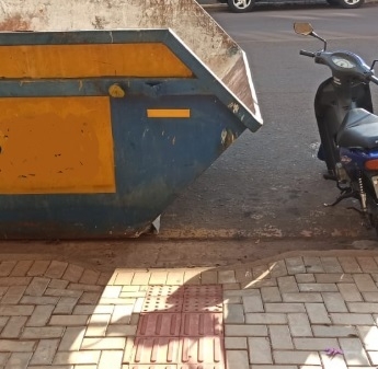 A história da caçamba colocada na esquina da av. Manoel Mendes de Camargo com a rua São Josafat ganhou o terceiro capítulo. Agora internauta destaca que ela pode não estar na vaga de cadeirante, mas está impedindo a passagem pela rampa.