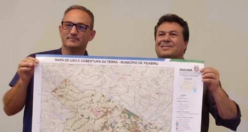 Márcio Nunes (PSD), secretário de Estado do Desenvolvimento Sustentável e Turismo, durante a Caravana do ICMS Ecológico, que esteve nesta sexta-feira na Comcam, em Campo Mourão. O IMCS Ecológico distribui R$ 400 milhões em todo o Estado. Na foto, ele está com o prefeito de Peabiru, Júlio Frare.