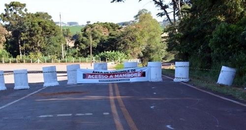 Olha a barreira com tubos de concreto colocado nesta segunda-feira no acesso secundário de Mamborê. Decreto do prefeito Ricardo Radomski mandou fechar tudo. Só o acesso principal ficou aberto, mas como controle de entrada. Só entrega essencial passa. Morador de Mamborê que quiser sair é orientado a voltar para casa. E quem é de fora também. No primeiro dia todos acataram as determinações.
