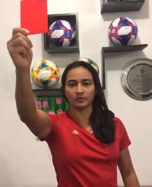 Edna Alves, árbitra de futebol, de Goioerê, em vídeo postado nas redes sociais sobre a necessidade do isolamento social. "Em tempo de coronavírus, para você marcar um gol de craque é só ficar na sua casa e seguir as recomendações do Ministério da Saúde", frisou a assistente Neuza Back, que também participou do vídeo.