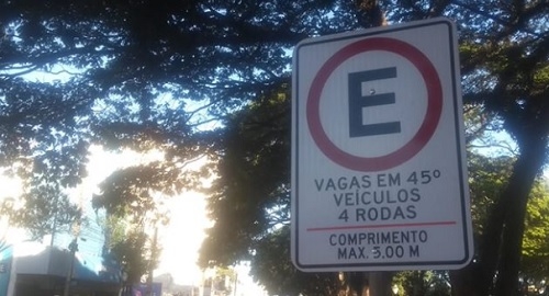 Por exemplo: no estacionamento em 45 graus, só veículos de quatro rodas e com no máximo cinco metros de comprimento.