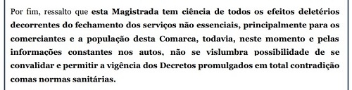 Assim como o MP, ela entendeu que a reabertura não teve embasamento técnico e/ou científico.