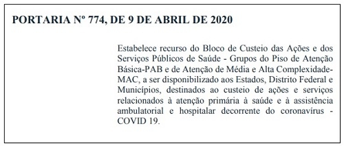 O Ministério da Saúde publicou quinta-feira portaria que libera R$ 4 bilhões para estados e municipios.