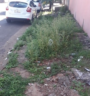 "Calçada no centro de Goioerê (rua Carlos Gomes) . E o pedestre deficiente e outros transeuntes passam aonde?"