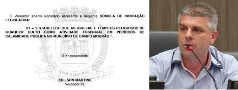 Ele quer que igreja, de qualquer religião, seja considerada "atividade essencial" em Campo Mourão.