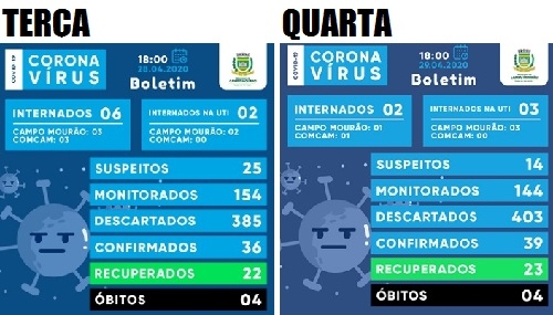 Mais três casos de coronavírus foram confirmados nesta quarta-feira em Campo Mourão.
