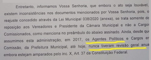 Alega que os agentes políticos não tiveram reposição na atual gestão.