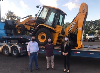 Seguem chegando as máquinas para a patrulha mecanizada do Condescom, que atuará em toda a região. Nesta sexta-feira foi a vez da retroescavadeira hidráulica, que custa R$ 168 mil. O prefeito Tauillo Tezelli (Campo Mourão) que representou a Comcam. Agora faltam chegar o trator agrícola e pá-carregadeira.