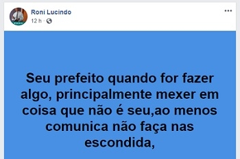 Além do ofício, Lucindo postou no Facebook criticas ao prefeito, com quem está rompido politicamente.