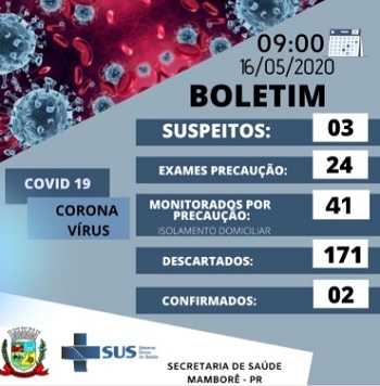A Secreetaria de Saúde de Mamborê confirmou neste sábado o segundo caso de covid-19 no município.