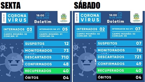 Depois de três dias, Campo Mourão voltou a ter caso confirmado de coronavírus. Agora são 49. De bom, o boletim deste sábado mostra que os casos suspeitos caíram de 12 para 7 e os internados na enfermaria de três para dois. Já a UTI Covid ganhou mais dois pacientes e agora são sete leitos ocupados - dois de Campo Mourão e cinco da região.