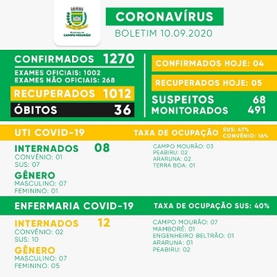 A notícia ruim do dia foi a morte de uma mulher de 71 anos que estava internada na Santa Casa. Agora são 36 óbitos por covid-19 em Campo Mourão desde o início da pandemia.