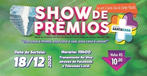 Já estão à venda às cartelas do Show de Prêmios da Santa Casa de Campo Mourão. É a tradicional promoção de fim de ano para ajudar o hospital a pagar o 13.o salário. A premiação soma R$ 50 mil, sendo R$ 30 mil para o prêmio principal. O sorteio será dia 18 de dezembro. Preço da cartela? O de sempre: "deizão".