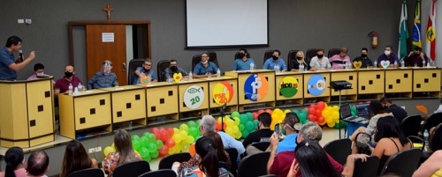 Márcio Nunes (PSD), secretária de Estado do Desenvolvimento Sustentável e Turismo, em discurso na convenção que homologou o nome da esposa dele, Fátima Nunes, como candidata a vice-prefeita de Campo Mourão na chapa de Tauillo Tezelli (CDN), neste sábado.