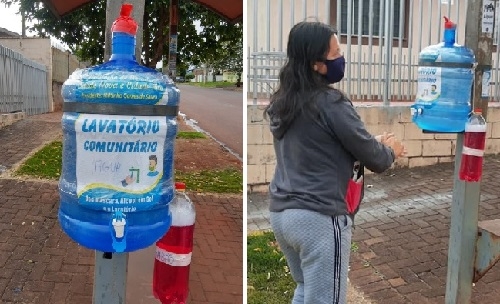 Olha a ação da Associação de Moradores do jardim Cidade Nova, em Campo Mourão. Colocou galões de água e sabão líquido em todos os pontos de ônibus do bairro. O Objetivo é a higienização das mãos de quem entra e quem sai dos ônibus. "Tá funcionando que uma beleza", diz o presidente Miltinho Gomes de Souza. O projeto será levado ao conjunto Fortunato Perdoncini e à praça do Cidade Alta 2.