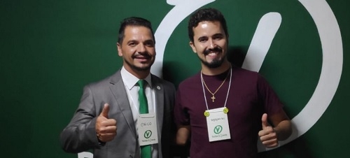 Na foto, Mikymias (à dir.), com o presidente estadual do PV, Francisco Caetano Martin.