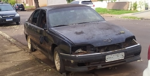 "Carro abandonado há "mais de ano" em frente à creche Sossego da Mamãe, na Vila Urupês".