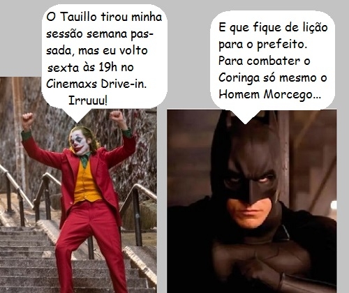 Lembra que o filme "Coringa" estava em cartaz no Cinemaxs Drive-in, mas teve de sair por causa do toque de recolher adotado em Gotham, ops, Campo Mourão City? Pois fique sabendo que o vilão conseguiu se safar mais um vez e voltará na sexta-feira, agora mais cedo, às 19h. Mas é só sexta. Sábado já entra "It A Coisa" e, domingo "Pets 2". Ah, sem o Batman por perto ninguém segura o Coringa...
