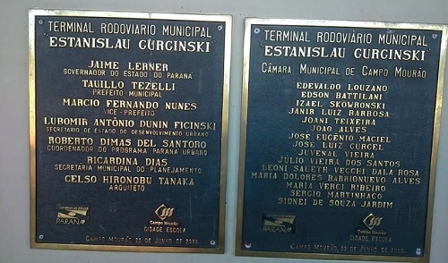 Placas - Com se vê nas placas, o prefeito era o mesmo de hoje - Tauillo Tezelli. O vice-prefeito era o hoje secretário de Estado Márcio Nunes. Dos 15 vereadores da época, dois ainda estão na Câmara - Sidnei Jardim, que estava no primeiro dos seus seis mandatos, e Edson Battilani, que teve idas e voltas.