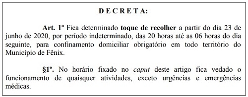 O prefeito de Fênix, Neno Molina, decretou nesta terça-feira toque de recolher município.