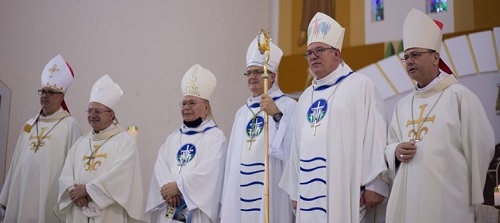 Seis bispos participaram neste domingo na missa que encerrou as comemorações pelos 60 anos da diocese de Campo Mourão. Além do anfitrião d. Bruno Versarsi e do emérito d. Javier Paredes, estavam presentes os bispos de Apucarana, Foz do Iguaçu, Londrina e Umuarama.