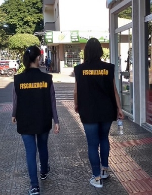 Fiscalização intensificada pelas ruas de Campo Mourão neste sábado pela manhã. É o primeiro dia de vigência do novo decreto de enfrentamento ao coronavírus, que inclui multa de R$ 150 para quem for visto nas ruas sem máscara. Também está proibido consumir bebidas alcoólicas em vias públicas. O toque de recolher entre 22h e 6h começou na sexta-feira à noite com direito a aviso por carro de som e sirene de alerta.