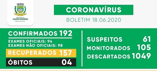 A prefeitura de Campo Mourão confirmou 13 novos casos de covid nesta quinta-feira - 2 exames oficiais e 11 não-oficiais.