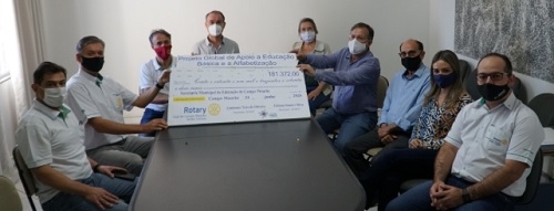 Teve entrega de "checão" para a prefeitura de Campo Mourão nesta quarta-feira. Desta vez veio do Rotary Verdes Campos. Foram R$ 181,3 mil repassados para a Secretaria de Educação, através do projeto "Apoio a Educação Básica e Alfabetização", do clube de serviço da cidade. O dinheiro será usado para compra de equipamentos para a educação especial, além de cursos para profissionais da educação.