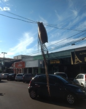 "Rua São Paulo, bem no centro Campo Mourão e s carros precisam desviar de um galho".